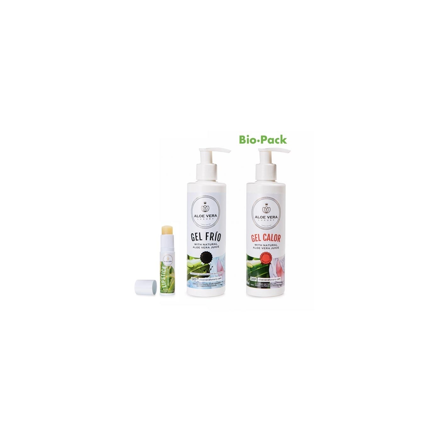 This pack of pure aloe vera contains a cold relax aloe vera gel, a heat relax gel 250ml format and a lipstick with aloe vera.